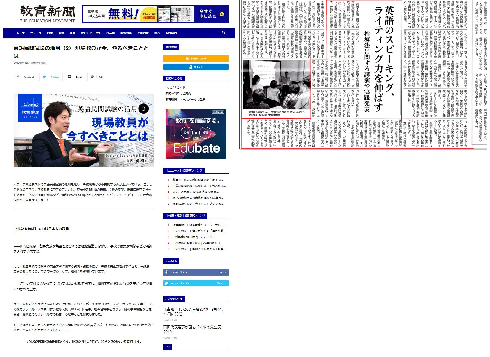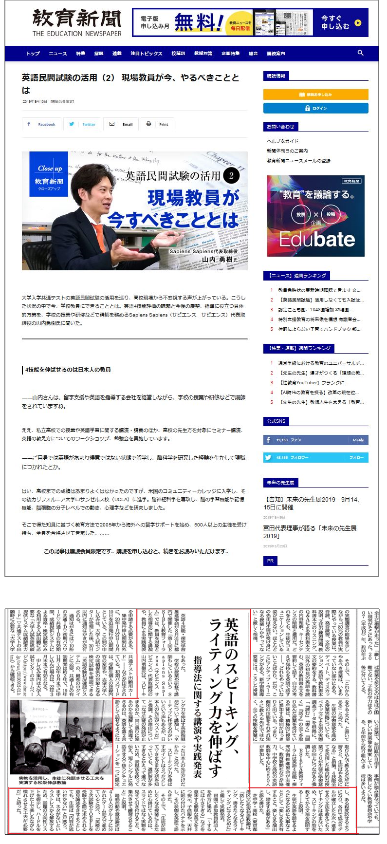 (2) 教育新聞 2019年9月9日 英語のスピーキング、ライティング力を伸ばす 指導法に関する講演や実践発表