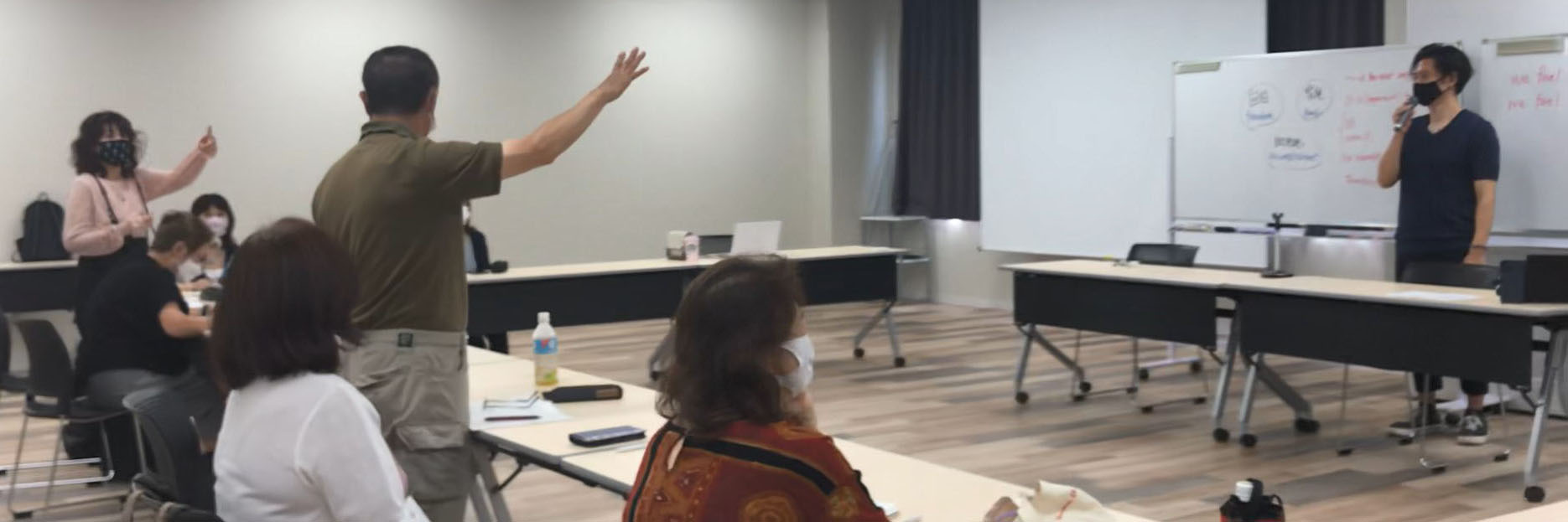 英会話の私たちの教室は東京の上野にあり、ここでレッスンですとか勉強会ですとかセミナーは開催しています。でも、生徒さまは上野周辺だけにいるわけではなくて日本あちこちにいらっしゃいますので、できる限り多くの方に英語を使う機会を持っていただきたいなとか、一人で勉強していても萎えてしまうとか楽しみが続かないということもあるので、同じ興味とか英語に取り組んでいる人が集まって英語を使う機会があったほうがいいなと思いまして。これは結構昔からずっと続けています。 もう 7~8 年は続けています。要望があったら行ってたりしたんです。最初は鳥取にも行っていましたし、滋賀県の四日市も行ったこともあります。かなり小規模ですが、数名の生徒さんがいらっしゃって。小規模でも勉強会とかセミナーとかをやると喜んでいただけたので。そういう活動も 7~8 年前から続けています。今はオンラインで受講したりできる時代ですから、生徒さんは昔から日本中にいました。どこに行っても生徒さんはいるんです。そこに行くたびに生徒さんと会ってお話をして、 勉強会をしてというのは続けています。今はコロナで行きにくい時期はあって、今は完全に止まっていますけど。全国を回って英語の楽しい勉強会をして、ときにはオフ会みたいな感じで食事会もしたりですとか。堅い勉強ばかりになりすぎてもね。セミナーはセミナーで面白く演出したり、笑いが起こるような楽しい場にしようとはするんですけど。やはりそのあとでの人間同士の交流もありますから、 オフ会のようなこともやってきていますし、これからも続けていこうかなと思っています。
