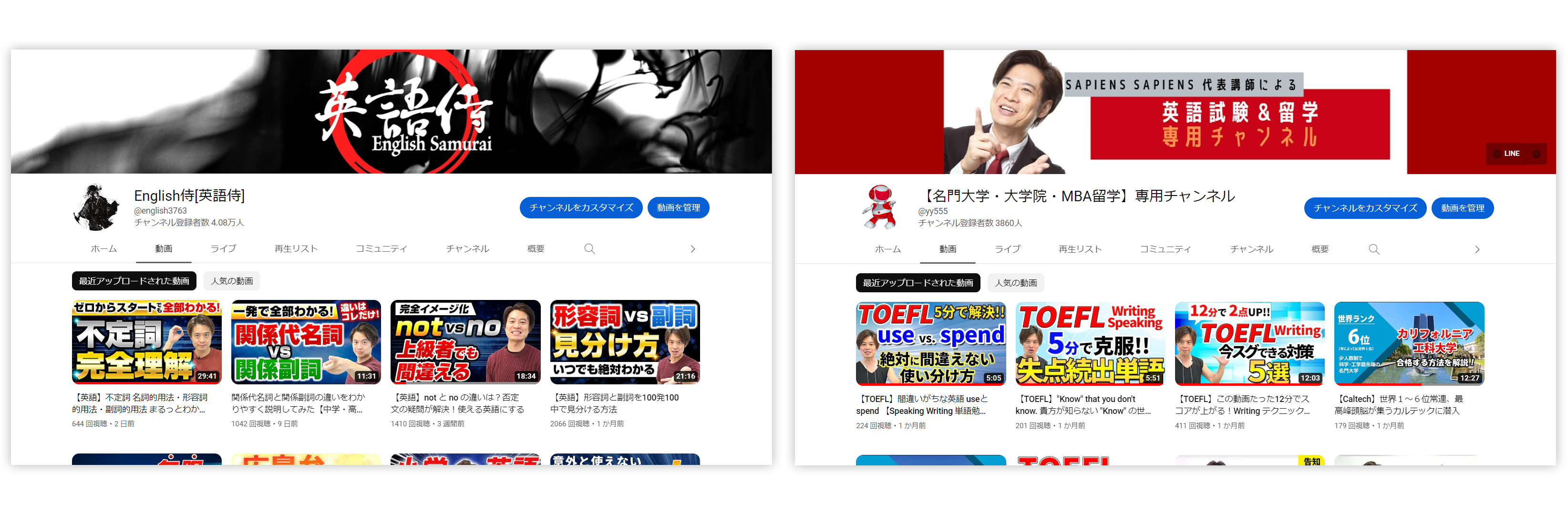 僕は YouTuber ではありませんが、YouTube はチャンネルがいくつかあると思います。登録数は 多くはなくて、多いものでも 1 万 5~6 千人くらいしかいませんが。もともと 10 年くらい前から YouTube を使っています。同じ授業を何回もすることになるので、動画を撮ってためておいて、それを見て、という。特に遠隔の生徒さんの場合には、オンラインで説明しても動画で説明しても伝えることは同じなので。よく使う説明は撮っておいて、それを YouTube 見てという感じで、実は 10 年くらい前から使っています。その名残で YouTube はいくつかあります。